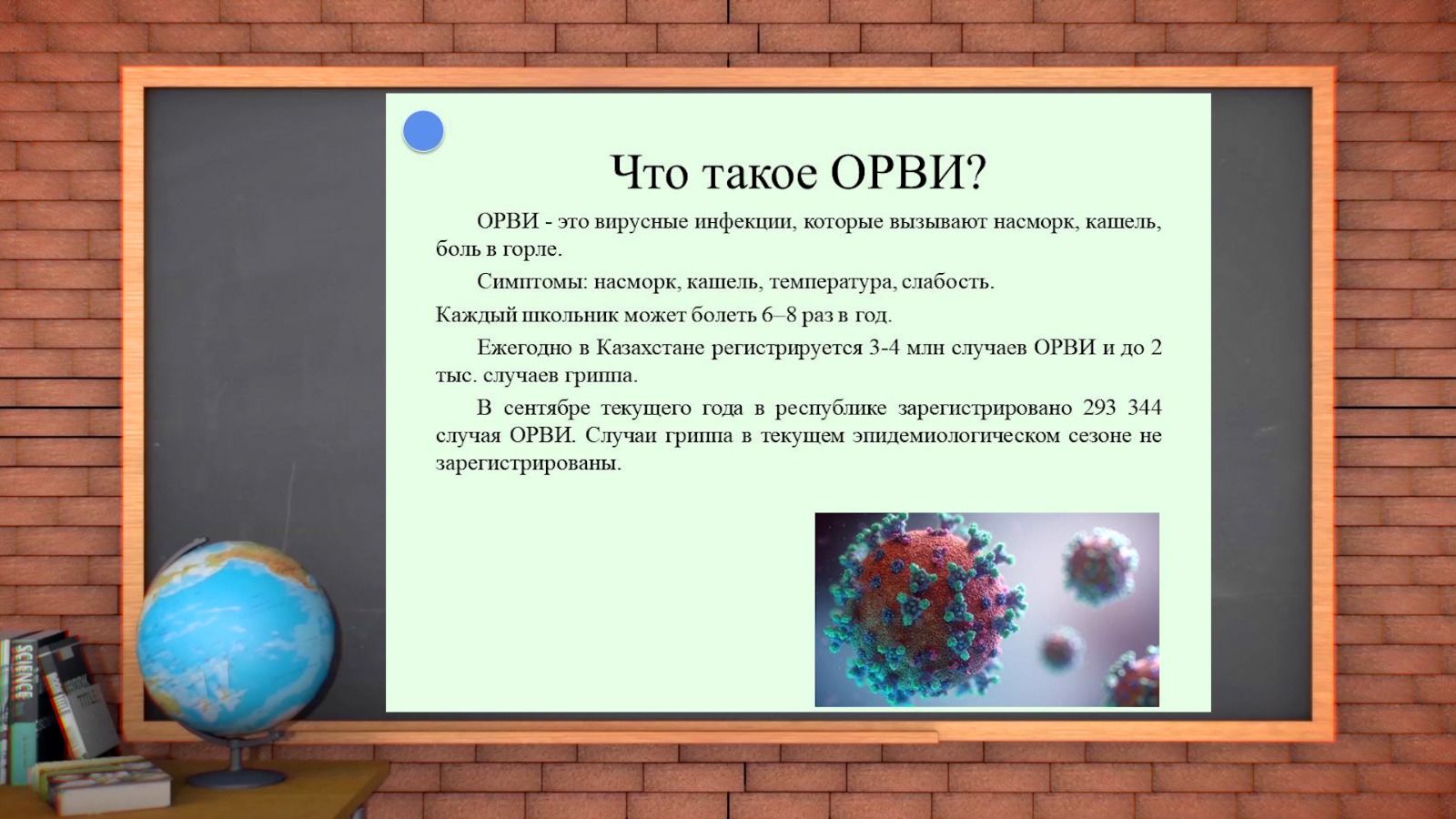 Сабақтың басында сарапшы негізгі ұғымдарды түсіндірді. ЖРВИ-бұл вирустық аурулар тобы, олар жеңілірек болады және бастапқы кезеңде емделеді. ЖРВИ-нің негізгі белгілеріне жөтел, мұрынның ағуы, тамақ ауруы және безгегі жатады.