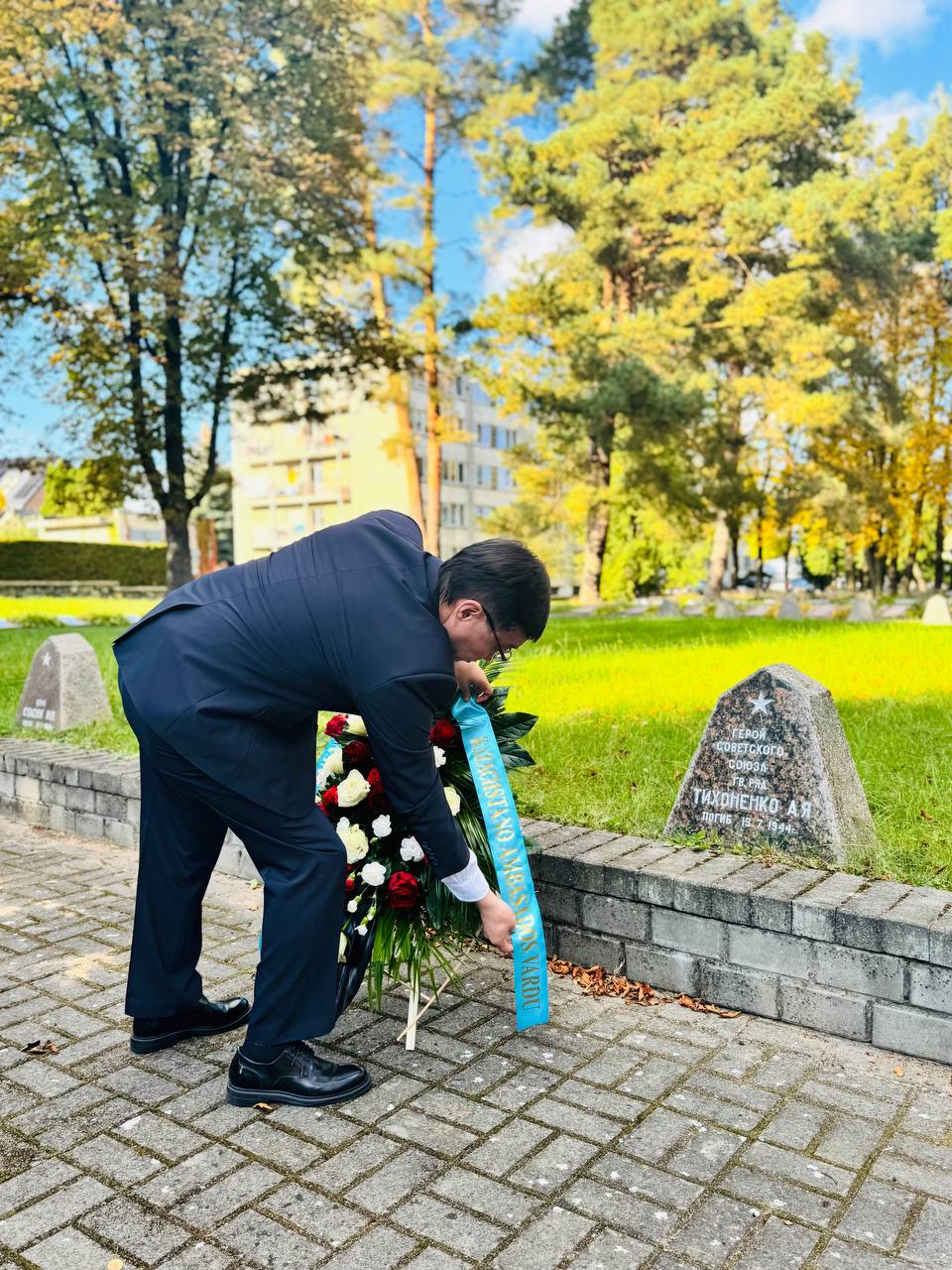 Алитус, 2025 жылғы 10 қазан – Литвадағы Қазақстан Елшілігінің өкілдері, Тимур Оразаев жетекшілігімен, Ұлы Отан соғыстың батыры және Қазақстан тумасы Алексей Яковлевич Тихоненконың рухына тағзым етіп, оның Алитус қаласындағы жерленген жеріне гүл шоғын қойды.