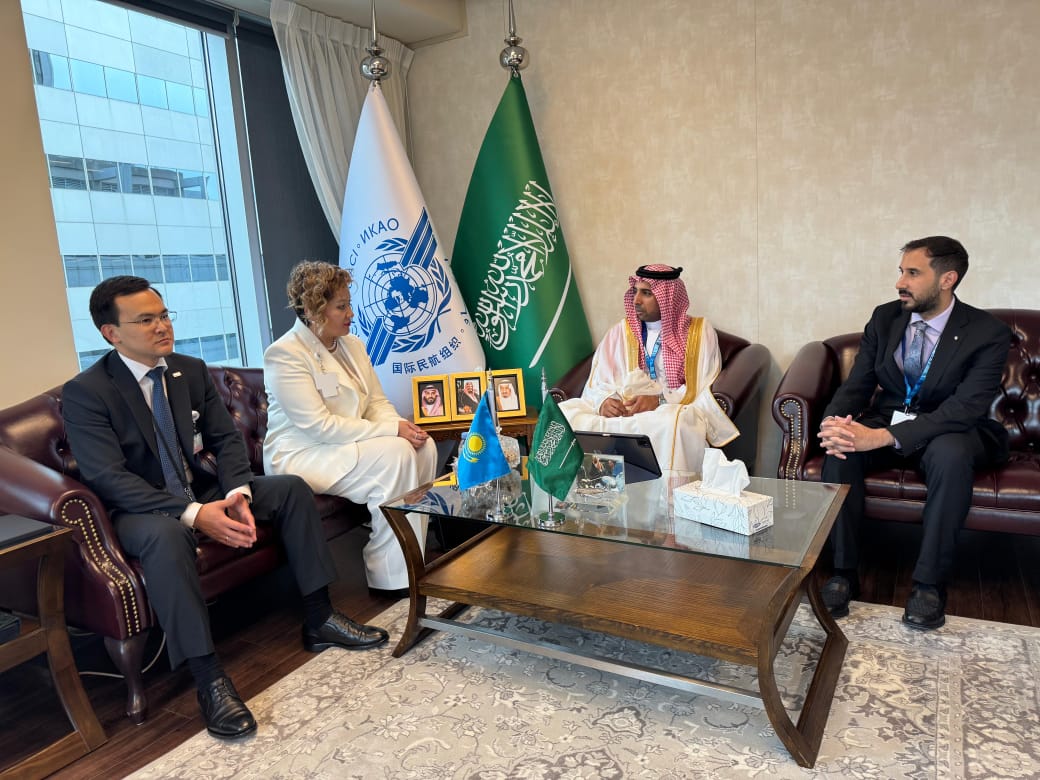 2025 жылғы 26 қыркүйек, Монреаль. ИКАО Ассамблеясының 42-ші сессиясы аясында Қазақстан Республикасы Көлік министрлігі Азаматтық авиация комитетінің төрағасы Салтанат Томпиева ханым және Қазақстан Республикасының ИКАО жанындағы Тұрақты өкілі Тимур Тлегенов мырза Сауд Арабиясы Азаматтық авиация бас басқармасының әуе көлігі және халықаралық ынтымақтастық жөніндегі атқарушы вице-президенті Әли Мұхаммед Раджаб мырзамен кездесті.