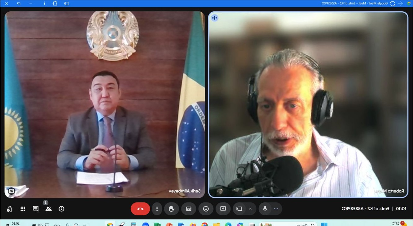 Бразилиа, 2025 ж. 17 қазан – Қазақстанның Бразилиядағы Елшісі Болат Нүсіпов Бразилия Ақпараттық технологиялар кәсіпқойлары қауымдастығының (ASSESPRO) Вице-президенті Роберт Майермен онлайн кездесу өткізді.