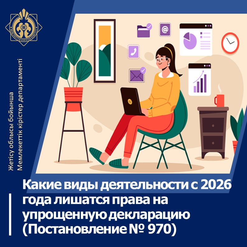 Жетісу облысы бойынша Мемлекеттік кірістер департаменті 2025 жылғы 14 қарашадағы № 970 «Оңайлатылған декларация негізіндегі арнаулы салық режимін қолдануға тыйым салынған қызмет түрлерінің тізбесін бекіту туралы» Қазақстан Республикасы Үкіметінің Қаулысының жақын арада күшіне енетінін хабарлайды. Бұл құқықтық акті 2026 жылғы 1 қаңтардан бастап Қазақстан Республикасының жаңа Салық кодексінің 723-бабы 1-тармағының 2) тармақшасына сәйкес қолданысқа енгізіледі.