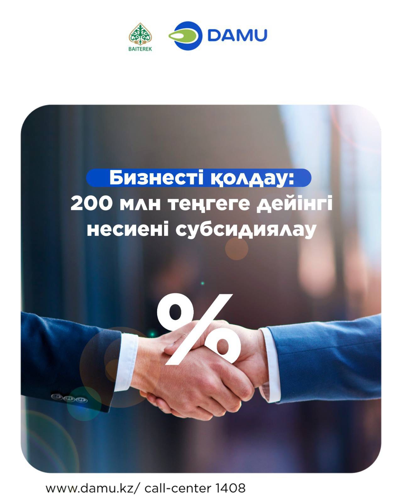 Бизнесті қолдау: 200 млн теңгеге дейінгі несиені субсидиялау