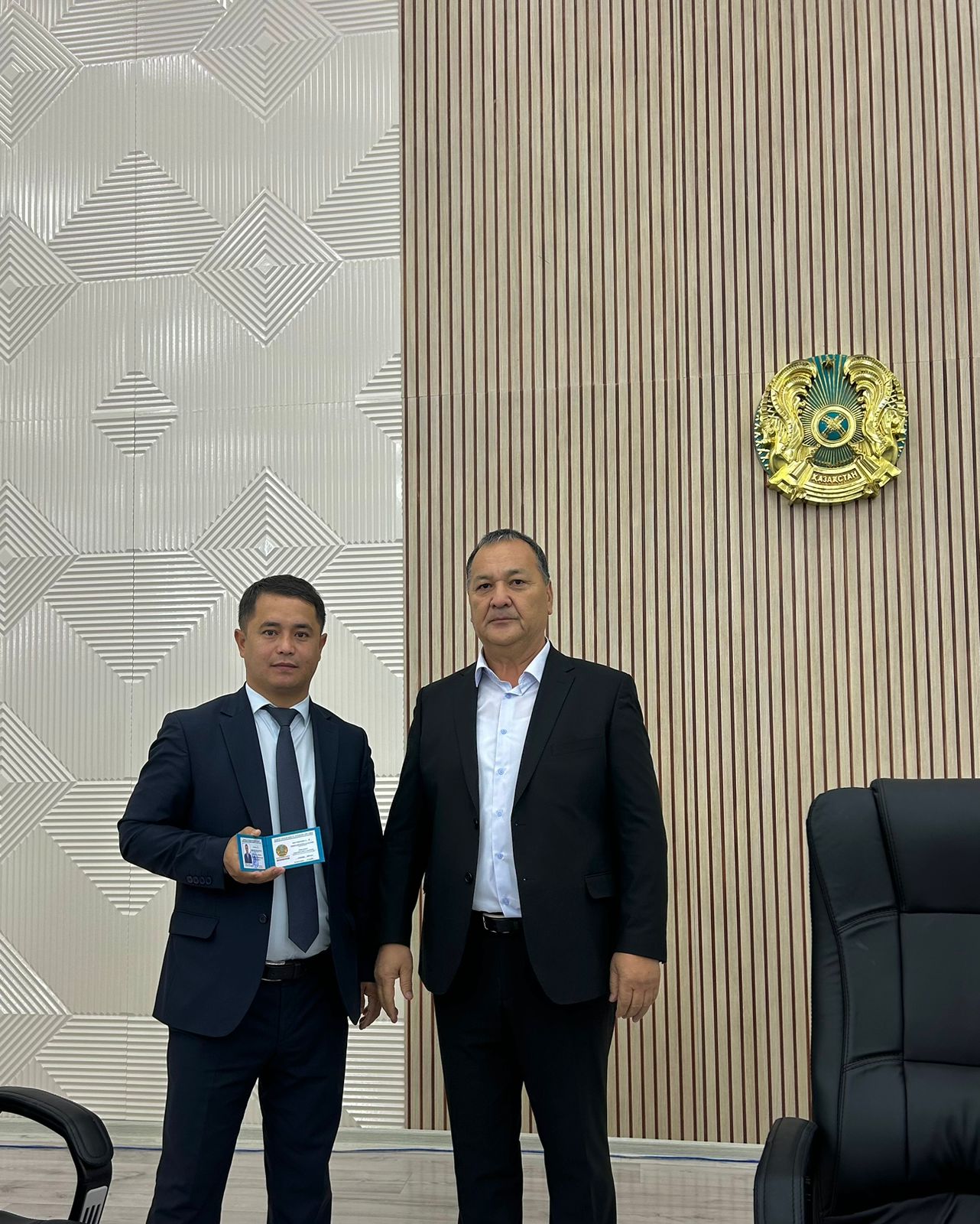 Мұнайлы аудандық аумақтық сайлау комиссиясының төрағасы Бейімбет Сүлейменов жаңадан сайланған әкімге қызметтік куәлікті ресми түрде табыстады.