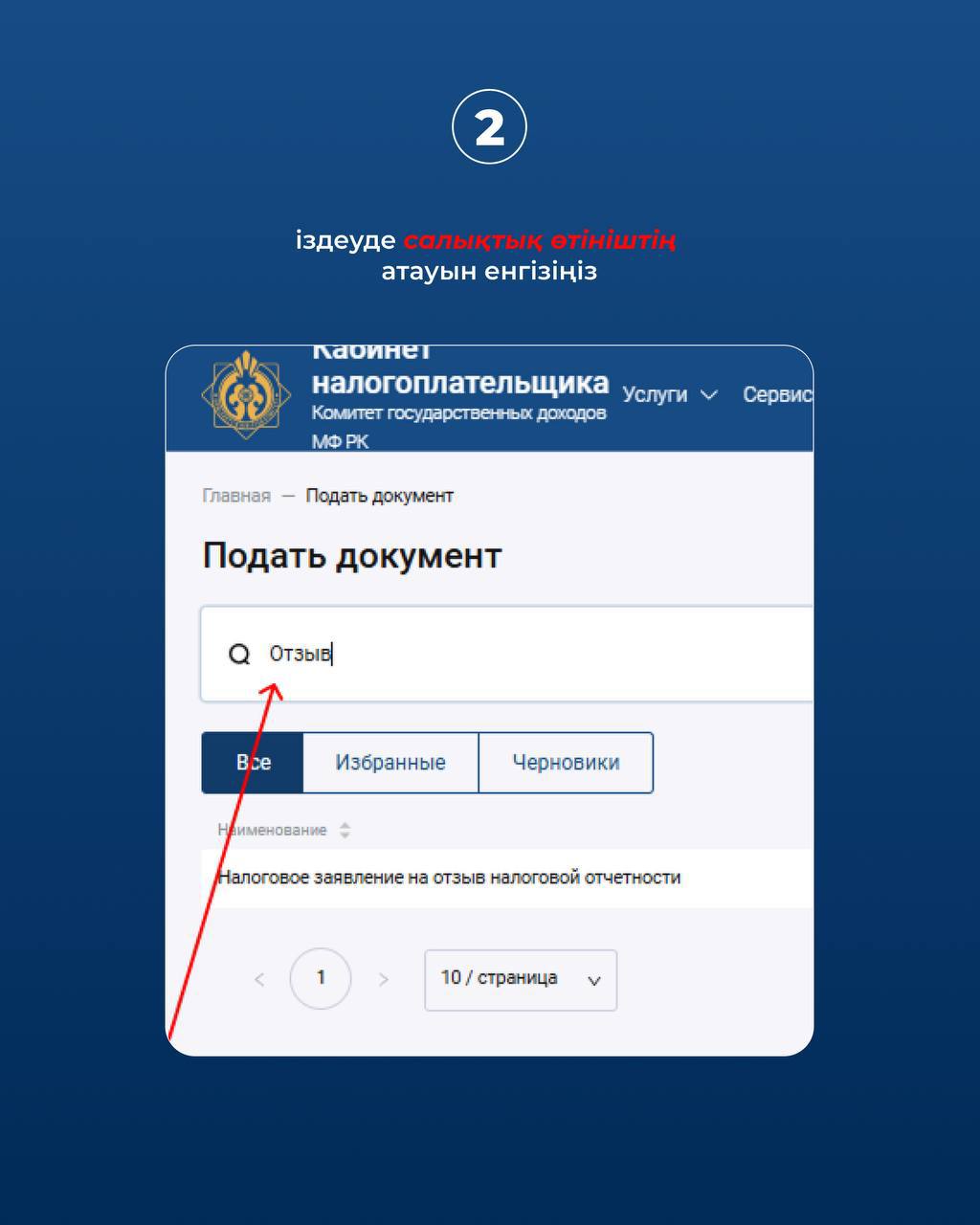 - Іздеуде салықтық өтініштің атауын енгізіңіз.