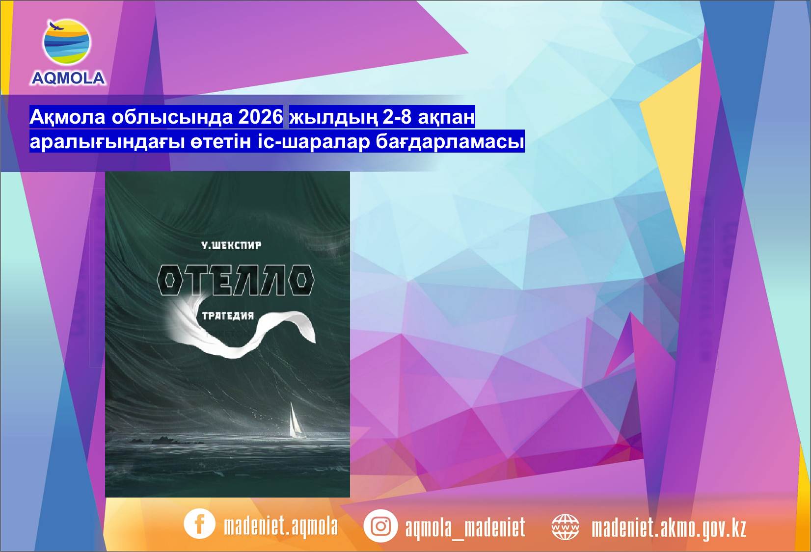 Ақмола облысында 2026 жылдың 2-8 ақпан аралығында өтетін мәдени іс-шаралар бағдарламасы