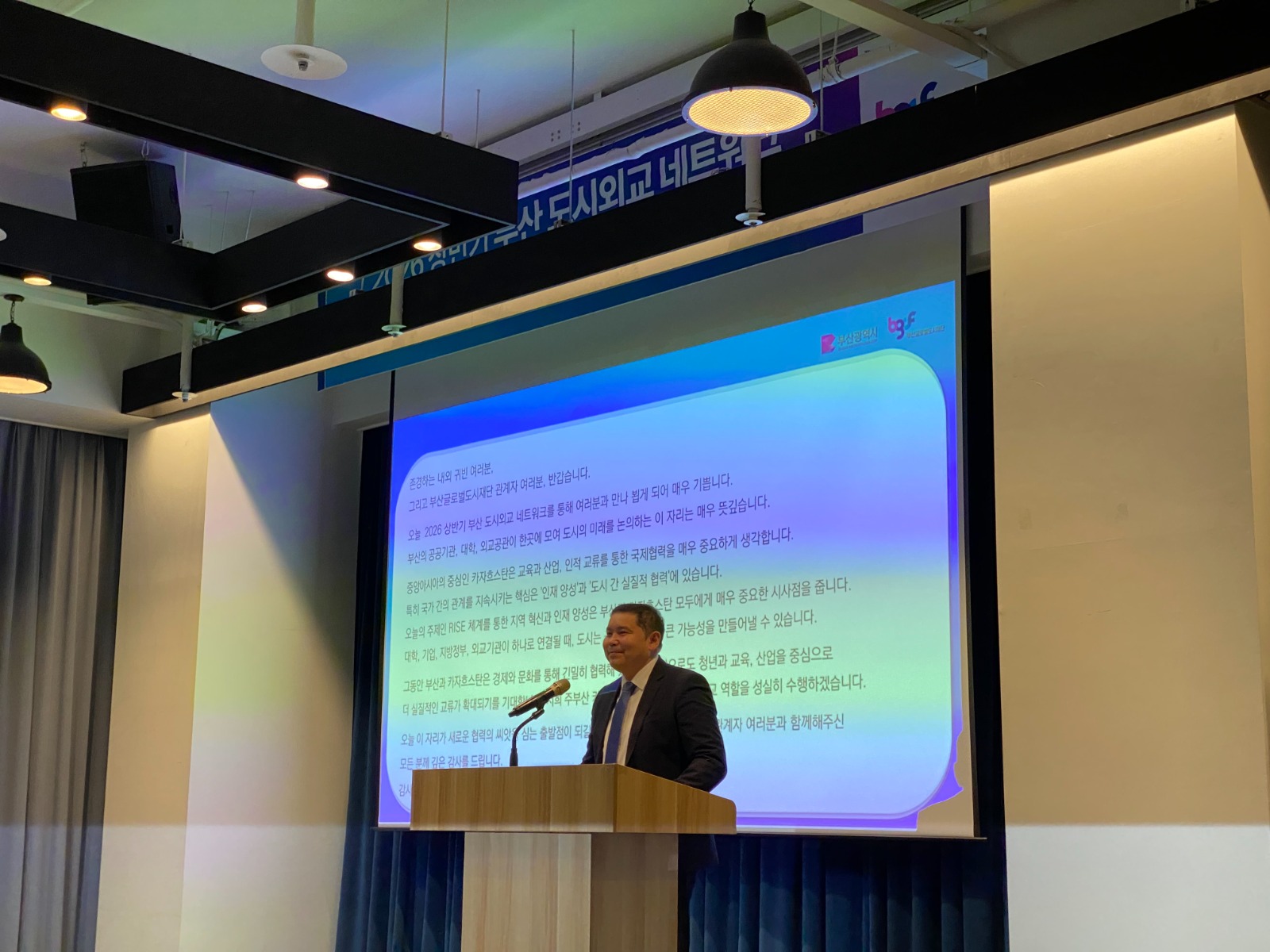 Пусан қ., 2026 жылғы 10 ақпан - Қазақстан Республикасының Пусан қаласындағы Бас консулы Аслан Асқар Пусан әкімдігі мен Пусан жаһандық қала қоры (BGCF) ұйымдастырған «Пусан қалалық дипломатия желісі 2026» форумына қатысты.