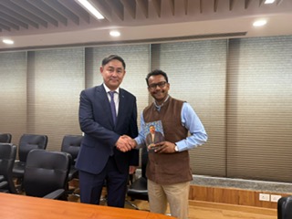 Нью-Дели, 2026 жылғы 8 сәуір - Қазақстан Республикасының Үндістан Республикасындағы Елшісі Азамат Есқараев Үндістан Сыртқы істер министрлігінің Сыртқы экономикалық қатынастар департаментінің Бас директоры др. Басир Ахмедпен кездесу өткізді.