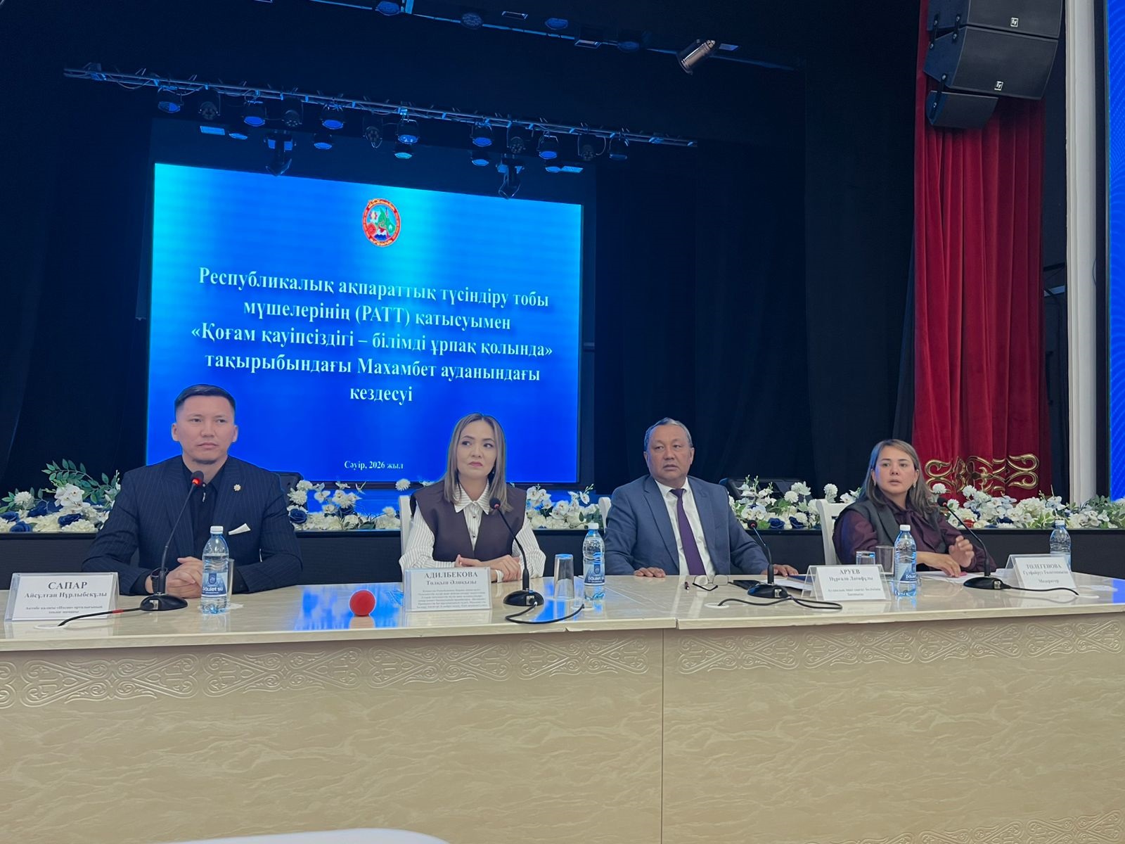 2026 жылғы 15 сәуірде Атырау облысы әкімдігі бекіткен Халықтың мақсатты топтарына ақпараттық түсіндіру жұмыстарын жүргізу бойынша іс-шаралар жоспарына сәйкес Атырау облысының Махамбет ауданындағы «Өнерпаз» мәдениет үйінде жастарға, аудандағы білім беру ұйымдарының жоғары сынып оқушыларына арналған «Қоғам қауіпсіздігі - білімді ұрпақ қолында» атты іс-шара өткізілді.