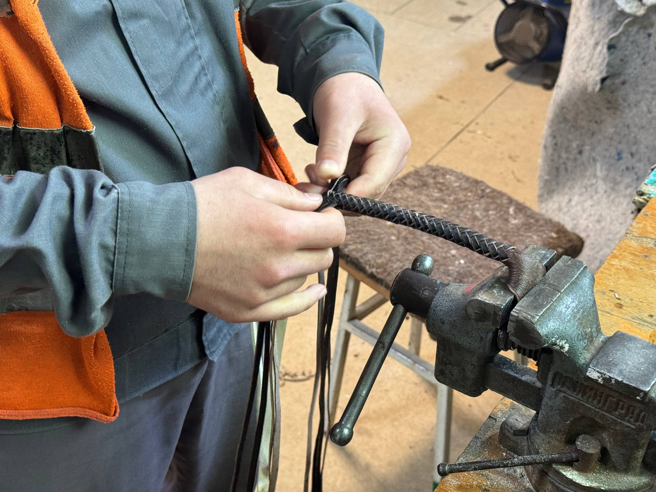 Сондай-ақ бұл өндірісте еңбек етіп жүрген сотталғандардың бірінің жеке тарихы ерекше назар аударады. Ол бала кезінен халық шығармашылығына қызығып, ағаш пен сүйекке ою ойып, сурет салумен айналысқан. Өзінің айтуынша, бала кезінде қамшы өретін атасын жиі бақылағанымен, ол кезде бұл өнерді меңгере алмаған. Сотталғанға дейін әртүрлі салада — тас қалаушы, ағаш шебері және дәнекерлеуші болып жұмыс істеген. Владимир Осиповтың өндірісіне жұмысқа орналасқаннан кейін тері мен киізден бұйым тігуді үйреніп, ал 2025 жылы тәлімгердің көмегімен қамшы өруді толық меңгерген.