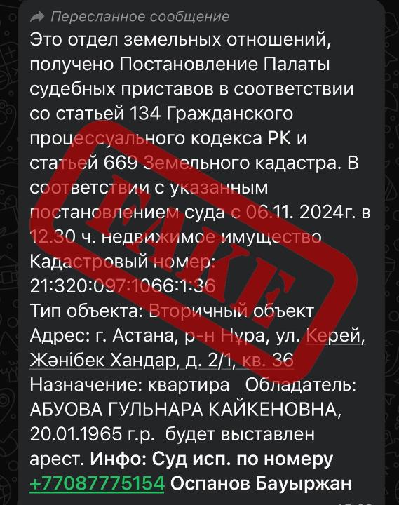 WhatsApp мессенджері және өзгеде әлеуметтік желілер арқылы ел азаматтарына алаяқтар мүліктерінің бұғатталғаны туралы жалған хабарлама таратуда.