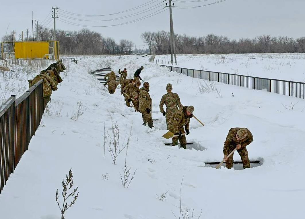 В Уральске 50 военнослужащих задействованы в работах по очистке арыков и каналов от снега 11.03.2026