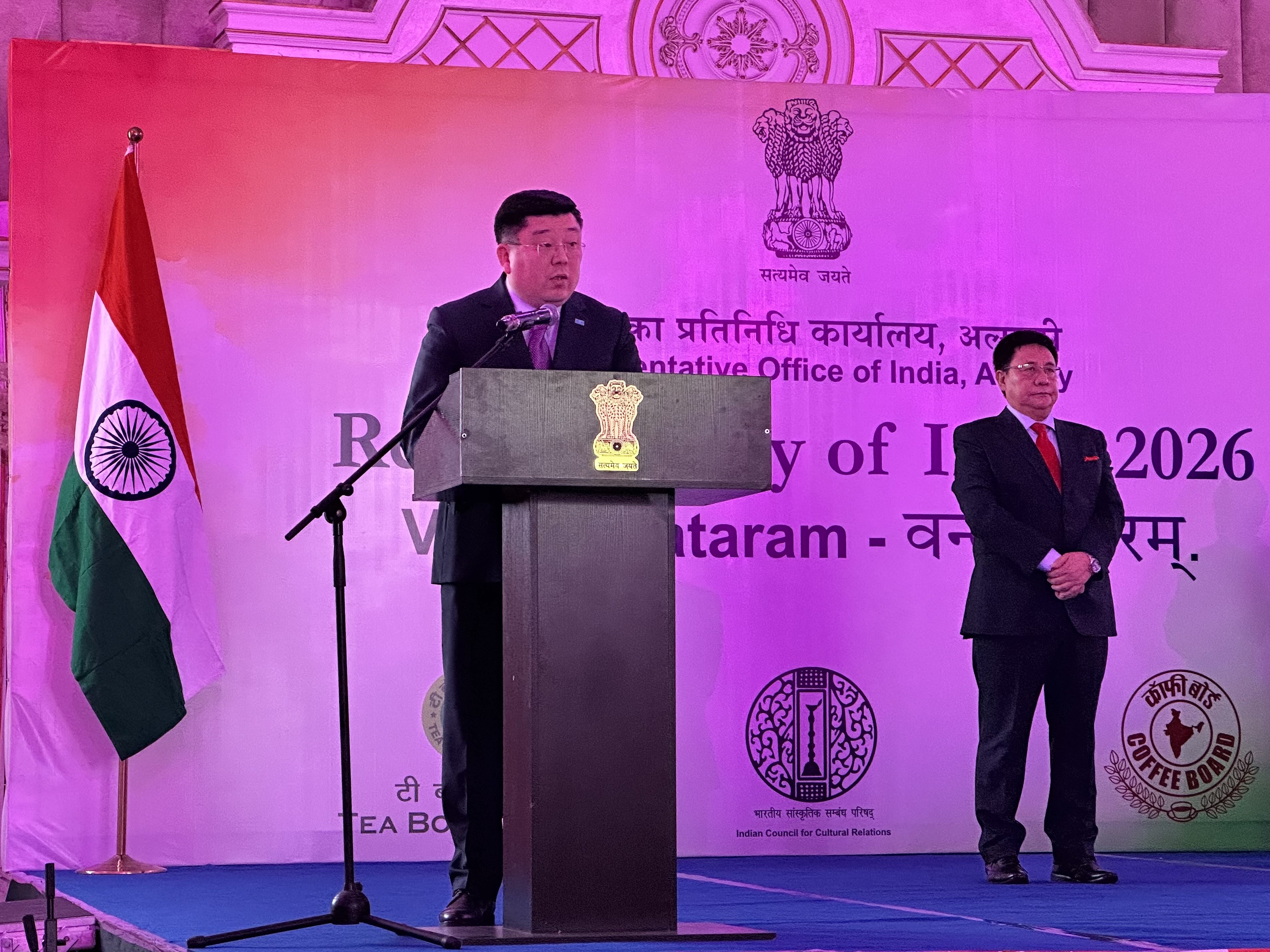 27 января 2026 года Посол по особым поручениям – руководитель Представительства Министерства иностранных дел Республики Казахстан в г. Алматы Жанибек Абдрашов выступил с приветственной речью на приеме по случаю 77-го Дня Республики Индия. В своей речи Ж. Абдрашов отметил высокий уровень казахстанско-индийских отношений, включая активный политический диалог, укрепление культурного и гуманитарного сотрудничества, а также значимость торгово-экономических и инвестиционных связей. В завершении дипломат выразил уверенность в дальнейшем углублении дружественного и взаимовыгодного сотрудничества между Казахстаном и Индией. Источник информации : https://www.gov.kz/memleket/entities/mfa-almaty/press/news/details/1149791?lang=kk