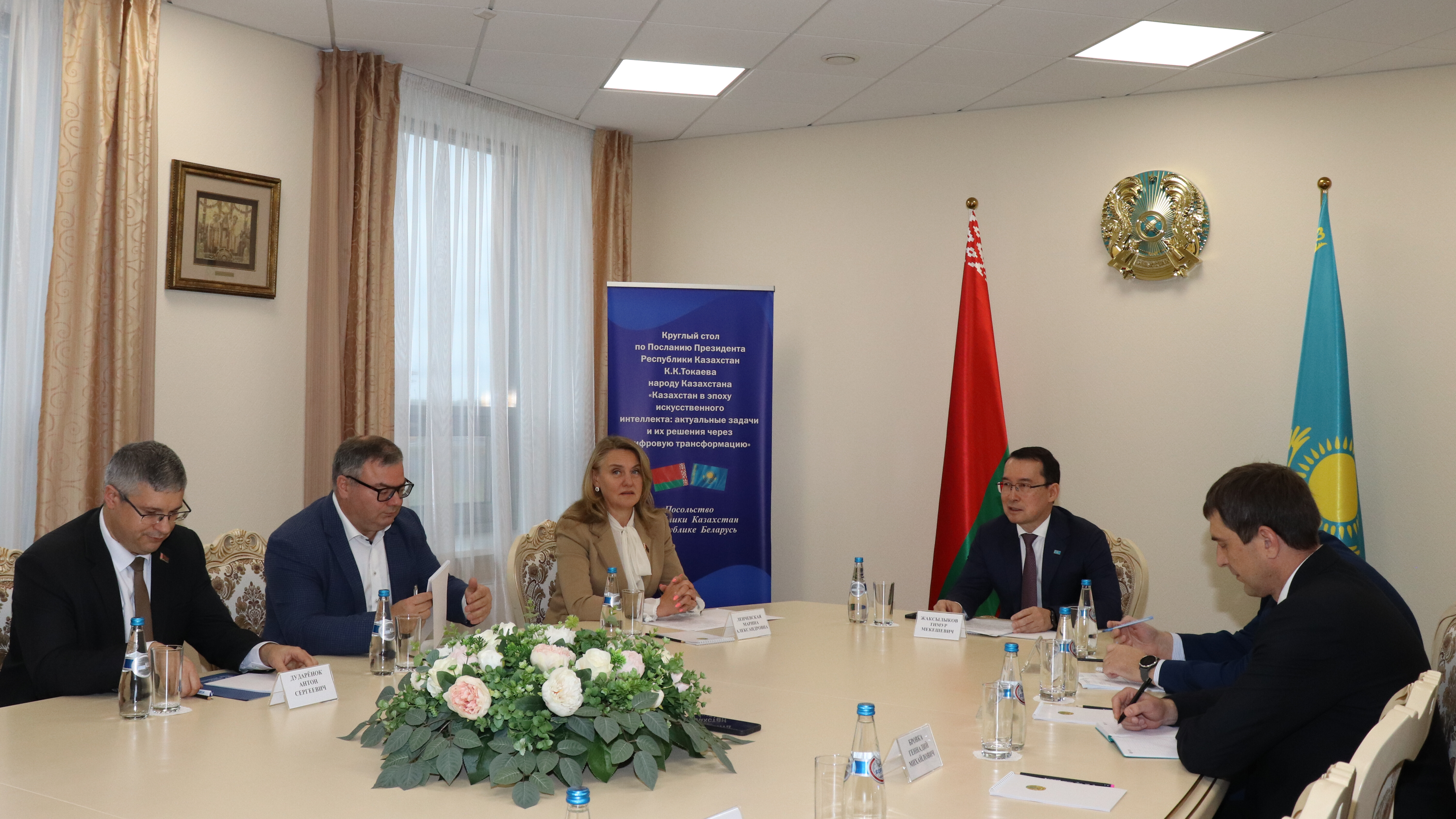 Минск, 19 сентября 2025 года – В Посольстве Казахстана в Беларуси состоялся круглый стол, посвященный Посланию Президента К.К.Токаева народу Казахстана «Казахстан в эпоху искусственного интеллекта: актуальные задачи и их решения через цифровую трансформацию» с участием авторитетных белорусских общественных деятелей и экспертов.Открывая встречу, Посол Казахстана в Беларуси Тимур Жаксылыков отметил, что в Послании Президент К.К.Токаев представил амбициозную программу реформ, ориентированную на цифровую трансформацию, инвестиционную модернизацию, глобальную взаимосвязанность и институциональное обновление. В Послании озвучен обширный комплекс инициатив, включая предложение о дальнейшем развитии политической системы Казахстана – реформы законодательного органа, а именно возможного перехода к однопалатному Парламенту. Таким образом, масштабные преобразования, которые инициирует Казахстан, открывают новые горизонты не только для Казахстана, но также несут возможности для укрепления сотрудничества с нашими стратегическими партнерами, включая Республику Беларусь.В свою очередь, депутат Палаты представителей Национального собрания Республики Беларусь, председатель Постоянной комиссии по законодательству, руководитель Рабочей группы Национального собрания Беларуси по сотрудничеству с Парламентом Казахстана Марина Ленчевская отметила, что нынешнее Послание ознаменовало новый этап в стратегическом развитии страны, в котором зафиксирован курс на фундаментальные реформы и конкретные меры, направленные на создание безусловно сильной и устойчивой страны в условиях быстро меняющихся глобальных вызовов. Казахстан ставит перед собой амбициозные цели превратить экономику в более высокотехнологичную, диверсифицированную и конкурентоспособную. Послание имеет широкое значение не только для Казахстана и соседних стран, но и для всего евразийского пространства в целом. В этой связи М.Ленчевская также подчеркнула важность законодательного опыта Мажилиса Казахстана в сфере цифровизации, с которым тесно и продуктивно взаимодействуют белорусские парламентарии.Особое внимание участники круглого стола уделили изложенным в Послании инициативам, которые открывают новые возможности для расширения сотрудничества Казахстана и Беларуси в области инвестиций, транзитно-транспортного потенциала двух стран, в сфере атомной энергетики, сельского хозяйства, а также цифровизации и искусственного интеллекта.Источник информации : https://www.gov.kz/memleket/entities/mfa-minsk/press/news/details/1072423?lang=kk