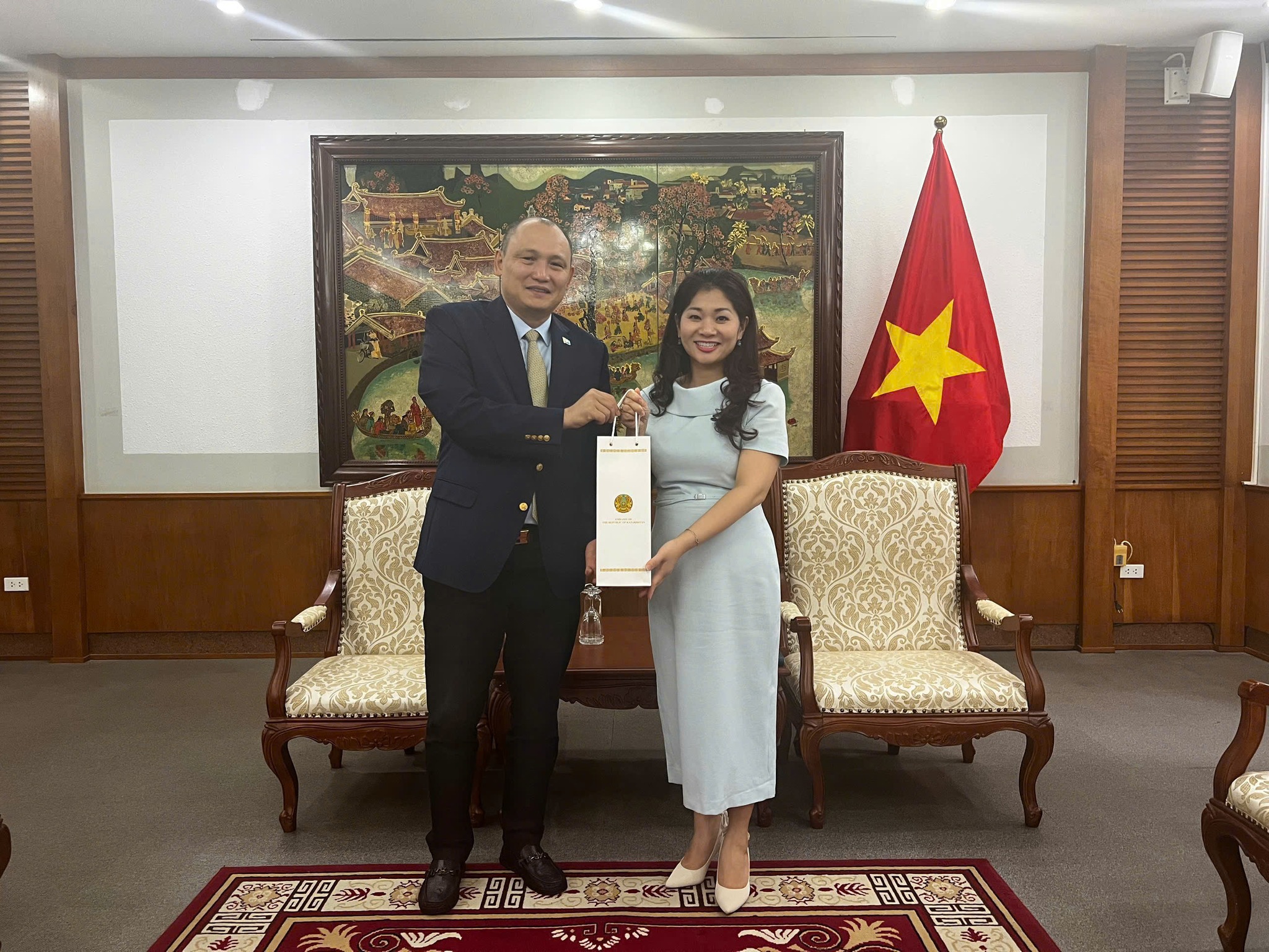 17 сентября 2025 года Посол Казахстана Канат Тумыш встретился с Генеральным директором Департамента международного сотрудничества Министерства культуры, спорта и туризма Вьетнама г-жой Нгуен Фыонг Хоа.Стороны обменялись мнениями о 1-м Всемирном дне культуры, который состоится 4-5 октября 2025 года в г. Ханой, в ходе которого Посольства получат возможность продемонстрировать свои национальные блюда, костюмы, фильмы, предметы искусства и культуры.Посольство Казахстана удостоилось чести присоединиться к этому важному мероприятию и официально зарегистрировало свое участие в популяризации казахской культуры и дальнейшем укреплении культурного обмена между Казахстаном и Вьетнамом.Источник информации : https://www.gov.kz/memleket/entities/mfa-hanoi/press/news/details/1070351?lang=kk