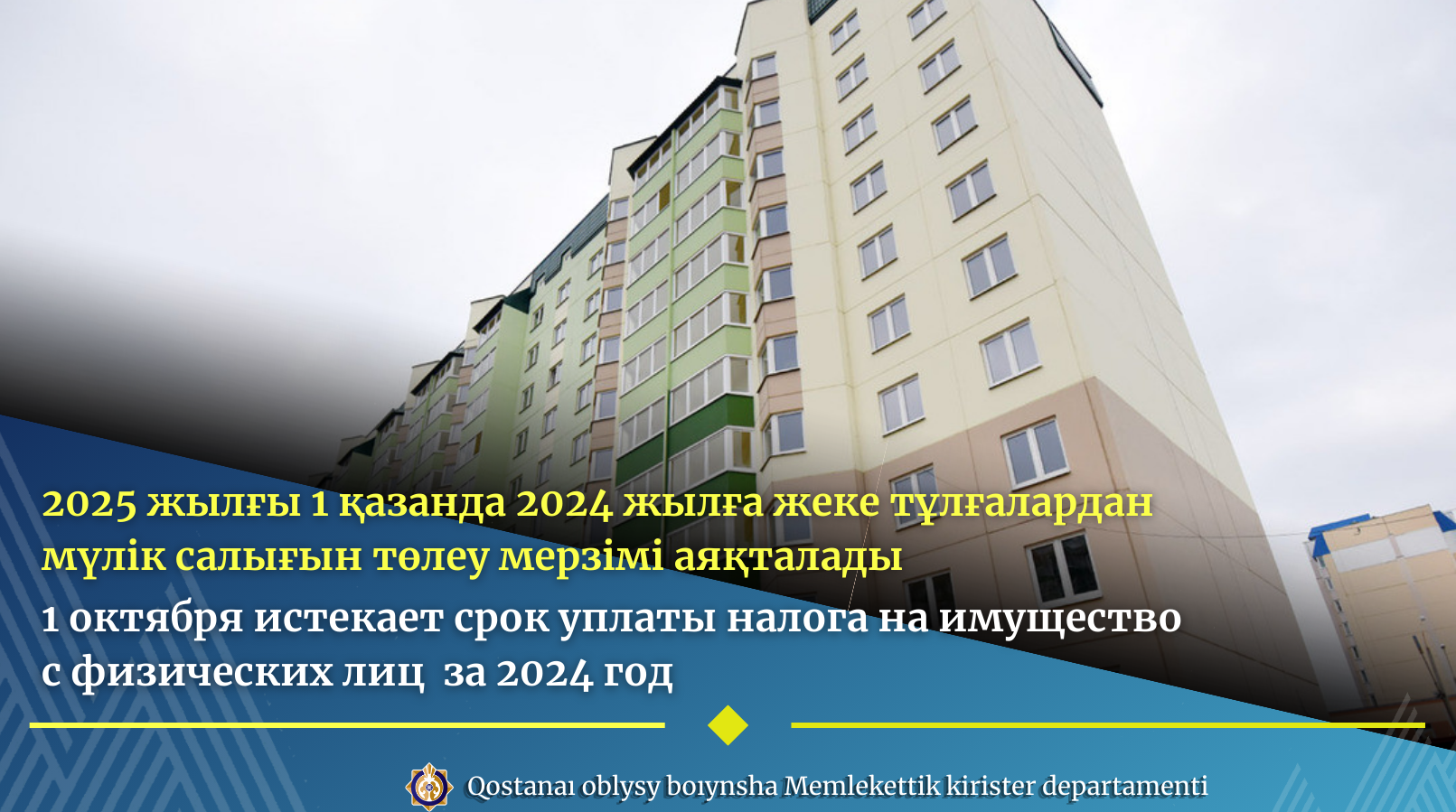 1 октября истекает срок уплаты налога имущество с физических лиц за 2024 год.Плательщиками налога на имущество являются граждане, владеющие жилой недвижимостью на праве собственности (парковочные места, кладовки, квартиры, дома, дачи, гаражи, прилегающие к ним земельные участки), за исключением льготной категории граждан в соответствии с п. 2 ст.526 Налогового Кодекса.Уплата налога за налоговый период 2024 год физическими лицами производится в бюджет по месту нахождения объектов не позднее 01.10.2025 года.Cумму неуплаченного налога налогоплательщики могут узнать через сайт Комитета государственных доходов Министерства финансов Республики Казахстан (http://www.kgd.gov.kz//), в разделе «Электронные сервисы»/ «Предстоящие платежи для физических лиц»/«Сведения об отсутствии (наличии) задолженности и предстоящих платежах, учет по которым ведется в органах государственных доходов» по ИИН гражданина. Кроме того, в целях информирования налогоплательщиков на портале «электронного Правительства» (eGov.kz) и АО «Kaspi bank» (Кaspi.kz) также реализован сервис предстоящих платежей для предоставления физическим лицам возможности просмотра суммы налога до наступления срока уплаты с возможностью одновременного проведения оплаты по готовым реквизитам.Между тем, сообщаем, что в случае несвоевременной уплаты налога производится начисление пени за каждый день просрочки платежа.По возникающим вопросам необходимо обращаться в территориальные органы государственных доходов, контактные телефоны сотрудников размещены на интернет – сайте Департамента государственных доходов.Налогоплательщики г.Костанай могут получить информацию по номерам телефонов 28-18-32, 28-17-01, 28-40-27, 28-00-89.Источник информации : https://www.gov.kz/memleket/entities/kgd-kostanay/press/news/details/1074170?lang=kk