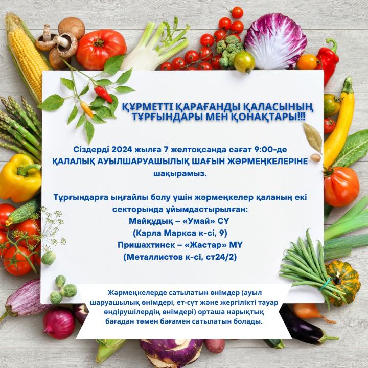 Сельскохозяйственные мини-ярмарки пройдут 7 декабря в Караганде 06.12.2024