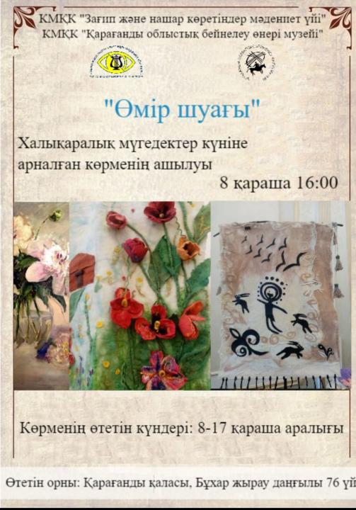Карагандинский областной музей приглашает 8 ноября в 16:00 на выставку «Пусть будет жизнь прекрасна!». Экспозиция приурочена к Международному дню слепых, который отмечается 13 ноября.Свои творческие работы представят люди с ограниченными возможностями. Все они воспитанники карагандинского Дома культуры незрячих и слабовидящих.Посетители смогут увидеть живопись (акварель, акрил, масло), аппликации из природных материалов, ткани и бумаги, а также лепку, валяние из шерсти, шитьё и вязание. Слабовидящие фотографы из кружка «Өрнек-Shimai» поделятся своим взглядом на мир и покажут около 100 работ.На открытии запланирована концертная программа участников художественной самодеятельности.Продлится выставка до 17 ноября.Адрес музея изо: пр-т Бухар-жырау, 76.Источник информации : https://www.gov.kz/memleket/entities/karaganda/press/news/details/877089