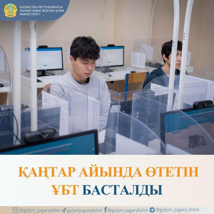 НАЧАЛОСЬ ЯНВАРСКОЕ ЕНТСегодня началось январское ЕНТ, которое продлится до 10 февраля. Около 167 тысяч человек подали заявление для участия в ЕНТ. Из них 76,7% изъявили желание пройти тестирование на казахском языке, 23,2% – на русском, 142 человек – на английском языке.В первый день проведения январского ЕНТ министр науки и высшего образования РК Саясат Нурбек посетил один из центров тестирования в г.Астана. Он ознакомился с ходом проведения ЕНТ и пожелал удачи будущим студентам.«При подаче заявлений абитуриенты сами выбрали дату, время и пункт тестирования. В первый день тестирования ЕНТ сдают 2277 человек по всей стране, в том числе в столице – 155 абитуриентов. Самой часто выбираемой комбинацией профильных предметов уже несколько лет подряд остается «Математика-Физика» – 17,5%. То есть, это будущие инженеры, механики, учителя, техники, технологи, энергетики и строители. Далее идут комбинации «Биология-Химия» – 17,3% и «Математика-Информатика» – 10,3%, соответственно будущие медики и IT-специалисты», - отметил министр Саясат Нурбек.Количество предметов на ЕНТ остается прежним – три обязательных и два на выбор. Количество заданий на ЕНТ – 120. В том числе, 20 заданий по «Истории Казахстана», 10 заданий по «Грамотности чтения», 10 заданий по «Математической грамотности» и по 40 заданий по двум профильным предметам. Максимальное количество баллов – 140 баллов.Время тестирования – 4 часа (240 минут). Стоит отметить, что для детей с особыми образовательными потребностями сохранится дополнительное время в 40 минут.Напомним, в январском ЕНТ участвуют лица, не набравшие пороговый балл по результатам летнего тестирования и зачисленные в вуз по очной форме обучения на платной основе условно, обучающиеся в вузе, желающие перевестись из творческих ГОП в другие направления подготовки на платной основе, желающие перевестись на педагогические направления подготовки на платной основе, а также обучающиеся выпускных классов школ для зачисления в вуз на платной основе по желанию.Источник информации : https://www.gov.kz/memleket/entities/sci/press/news/details/916553