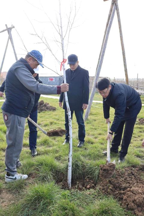 Аким района Еркегали Алимкулов, председатель районного маслихата Нурлан Койбагаров, председатель совета ветеранов Одирхан Шынгысбаев, депутаты районного маслихата, ветераны, жители, представители СМИ, высадили саженцы на территории парка «Толеби баба».