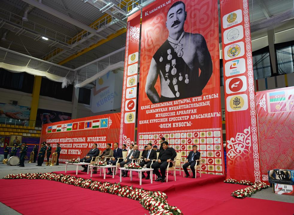 — Добро пожаловать в духовную столицу тюркского мира, священный Туркестан, на Кубок мира по казахской борьбе среди взрослых имени героя казахской степи Кажымукана Мунайтпасова. Казахская борьба занимает особое место среди национальных видов спорта. В настоящее время в более чем 40 странах мира созданы и работают Федерации национальной борьбы. Как известно, прошли чемпионаты мира, Азии, Африки и Европы по «қазақ күресі» и вышли на новый уровень развития. Соревнования «Туран барысы», «Қазақстан барысы», «Евразия барысы» и «Әлем Барысы», организованные и проводимые на высоком уровне в течение следующих десяти лет, сегодня также пользуются популярностью у зрителей. Все эти мероприятия вносят большой вклад в пропаганду здорового образа жизни среди населения, сохранение спортивных традиций и обычаев,— сказал Ертай Кенжебекулы.