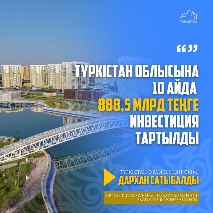 С НАЧАЛА ГОДА В ТУРКЕСТАНСКУЮ ОБЛАСТЬ ПРИВЛЕЧЕНО 888,5 МЛРД ТЕНГЕ ИНВЕСТИЦИЙ