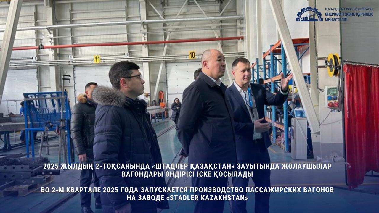К началу 2 квартала 2025 года на заводе «Stadler Kazakhstan» будет запущено производство пассажирских вагонов. В рамках оффтейк-контрактов с АО " НК " КТЖ " до 2030 года обеспечено приобретение 537 гарантированных единиц на общую сумму 2 2,3 млрд.