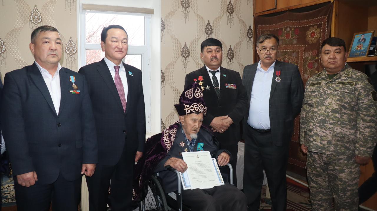 В Туркестанской области военнослужащие поздравили бойца со столетним юбилеем