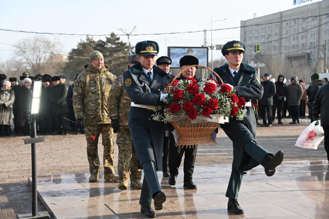 Память Алии Молдагуловой почтили аким области Асхат Шахаров, представители департамента по делам обороны, руководство, курсанты Военного института Сил воздушной обороны, военнослужащие Актюбинского гарнизона, ветераны Вооруженных сил, воспитанники движения «Жас сарбаз» и родственники.