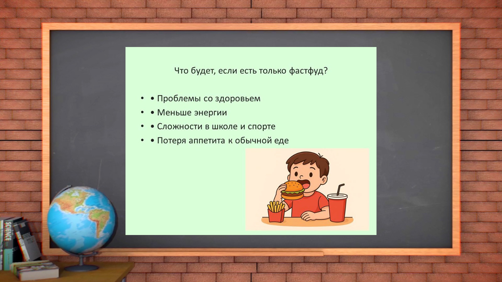 Урок стал настоящим открытием для школьников, которые узнали не только об истории и популярности фастфуда, но и о его влиянии на здоровье. Жанар Аскаровна призвала ребят задуматься о своем питании и сделать выбор в пользу здорового образа жизни. Участники поблагодарили гостью за содержательную беседу и выразили надежду, что полученные знания помогут им принимать осознанные решения в питании.