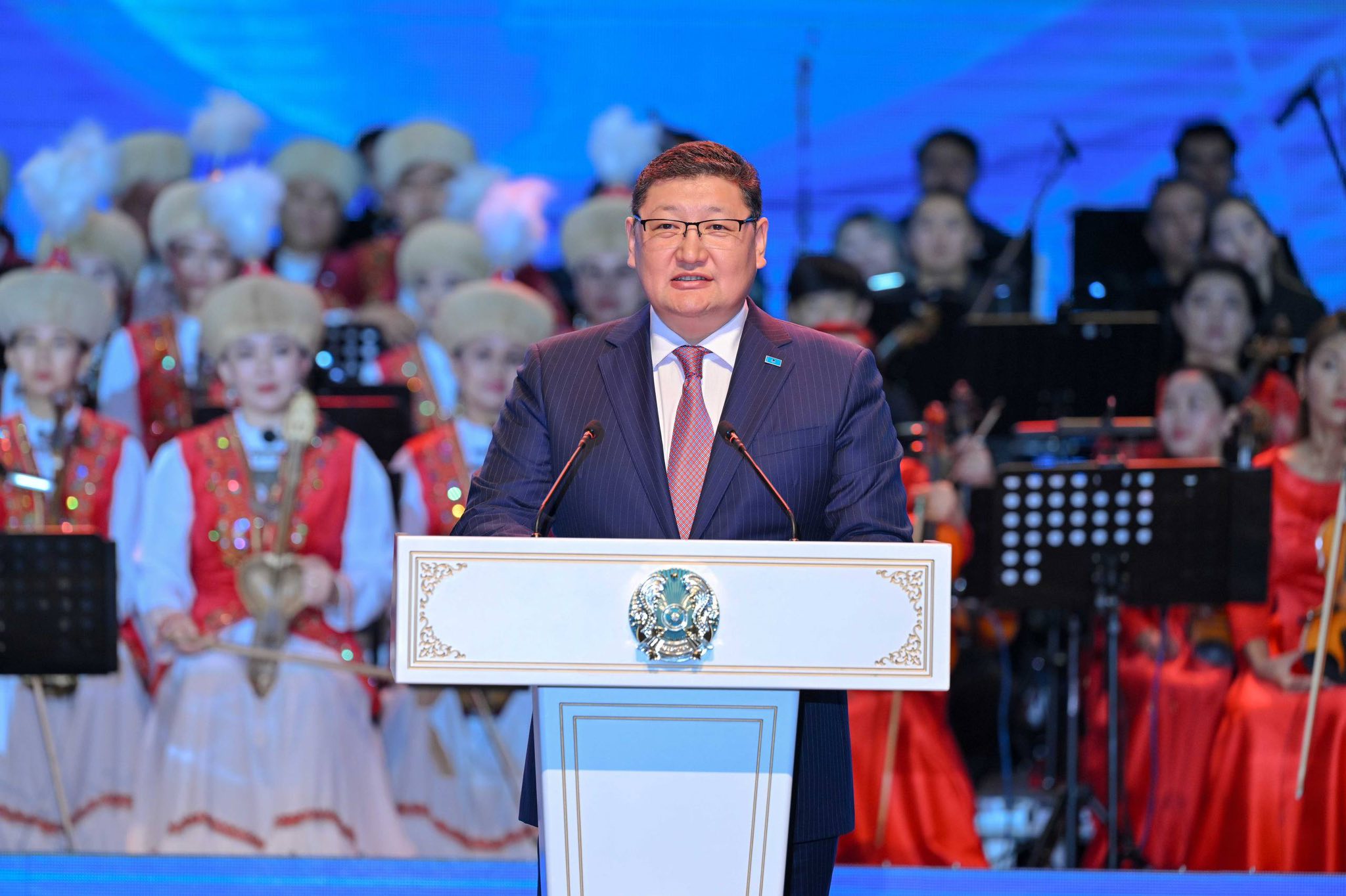 В театре имени Абая зрителям было передано музыкальное приветствие от нашего региона, а глава региона выразил свои добрые пожелания гостям концерта.