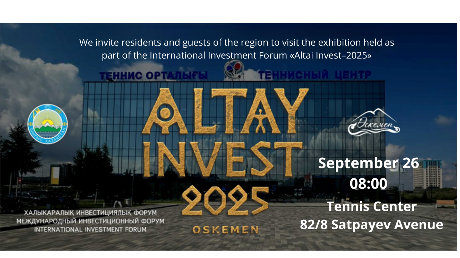 В рамках Международного инвестиционного форума «Altai Invest–2025» участникам будет предоставлена возможность обсудить механизмы реализации инвестиционных инициатив, а также перспективы создания совместных бизнес-идей на территории Восточного Казахстана.