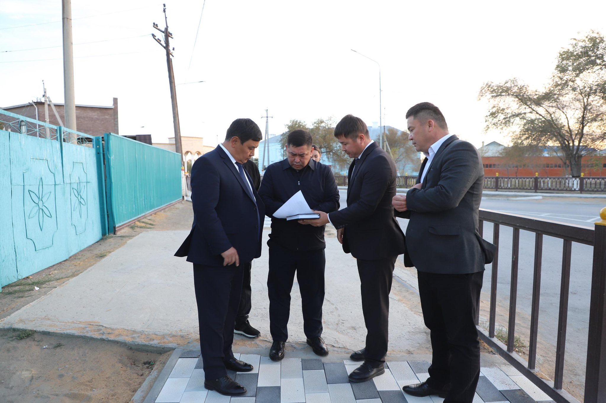 В первую очередь глава района проконтролировал строительство пешеходной дороги по улице Т. Рыскулова. На данный момент на этом участке уложено пешеходное покрытие общей площадью 1400 м². Необходимые строительные материалы для оставшейся части полностью доставлены. Проект реализуется подрядной организацией ИП «Димаш».