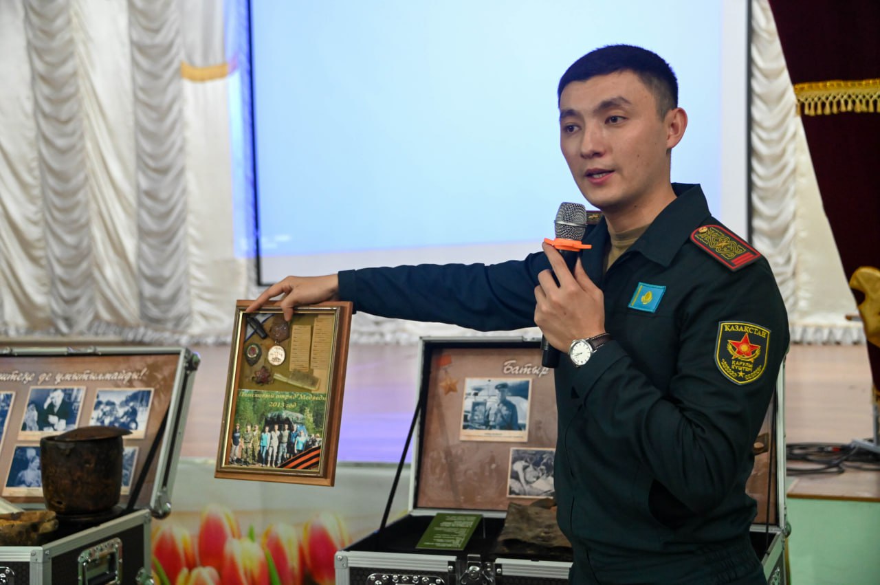 – Встреча была организована в рамках реализации программы военно-патриотического воспитания молодежи «Біртұтас ел – біртұтас жер». Подобные мероприятия мы провели уже во многих учебных заведениях. И эта работа будет продолжена, – пояснил старший офицер департамента воспитательной и идеологической работы Министерства обороны полковник Галымжан Жумабаев.