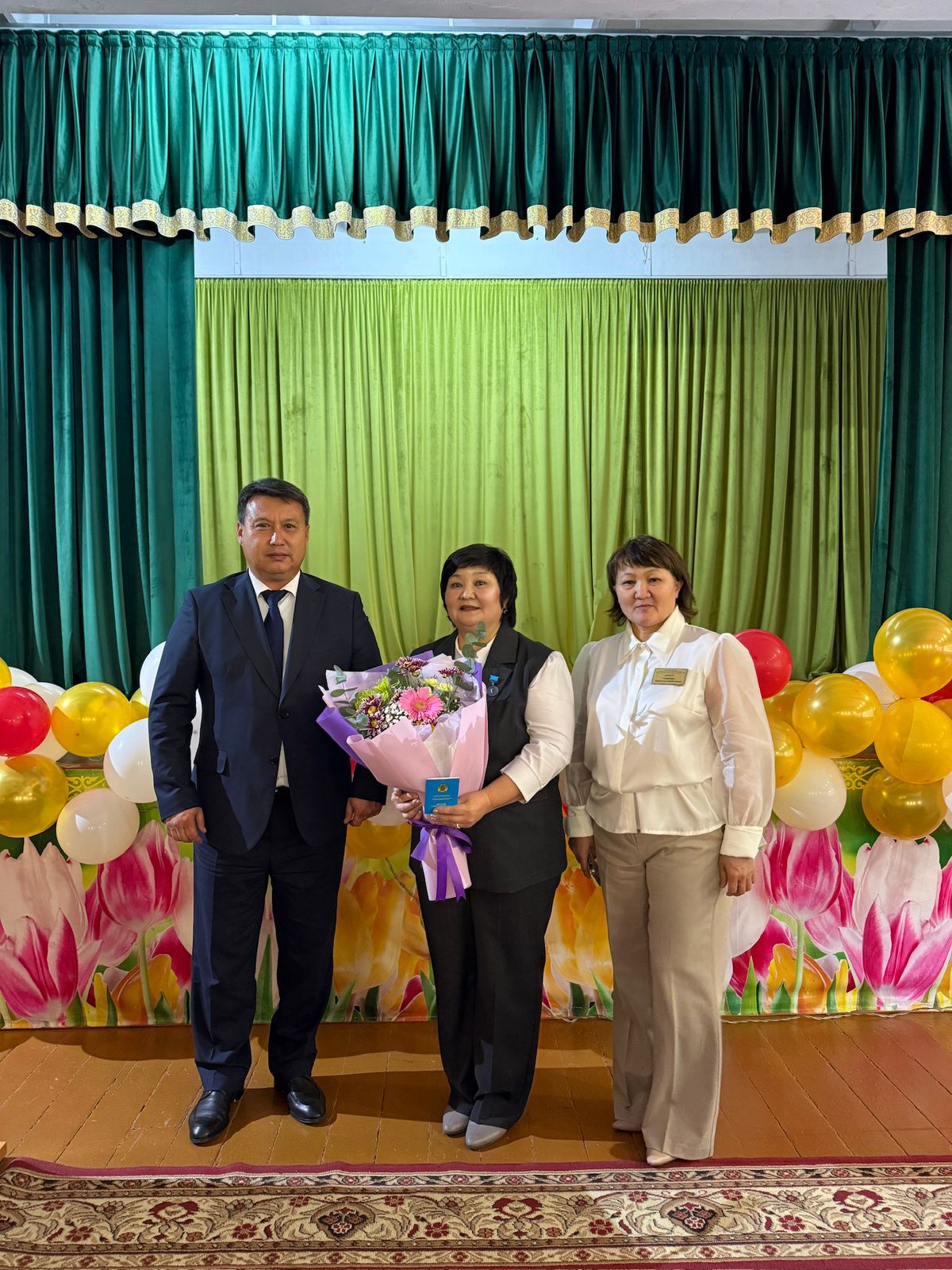 Накануне праздника руководитель управления образования Восточно-Казахстанской области вручил нагрудный знак «Ыбырай Алтынсарин» учителю казахского языка и литературы КГУ «Школа-лицей №3 имени Шокана Уалиханова» отдела образования города Усть-Каменогорска — Индире Айтахметовне Ибатаевой.