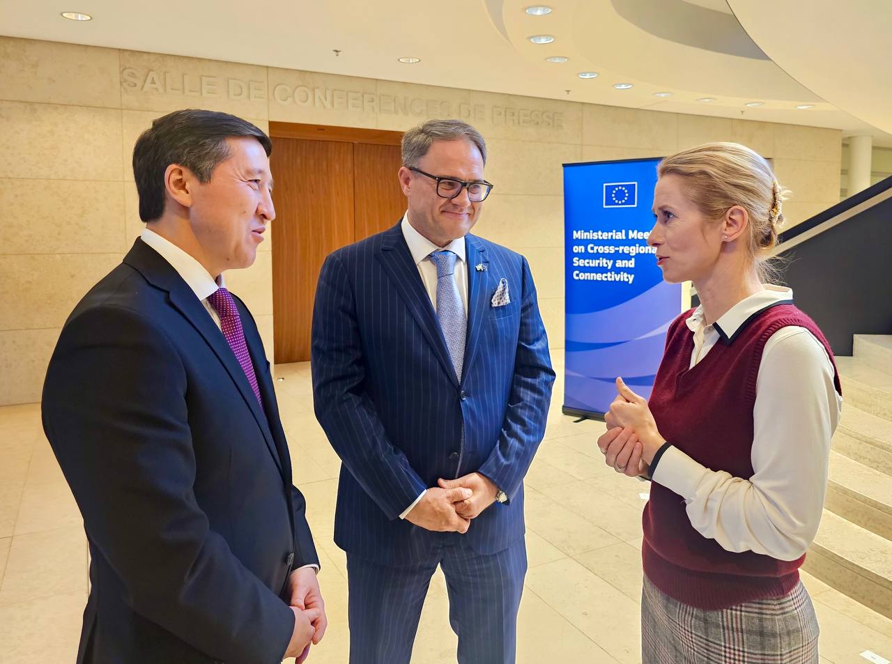 Люксембург, 20 октября 2025 года – На полях министерской встречи, посвящённой продвижению повестки инфраструктурной взаимосвязанности между государствами Центральной Азии, странами Восточного партнёрства, Турцией и Европейским союзом, Заместитель министра иностранных дел Республики Казахстан Арман Исетов встретился с Вице-президентом Европейской комиссии – Верховным представителем ЕС по иностранным делам и политике безопасности Каей Каллас, Еврокомиссаром по международным партнёрствам Юзефом Сикелой и Специальным представителем ЕС по Центральной Азии Эдвардсом Стипрайсом.