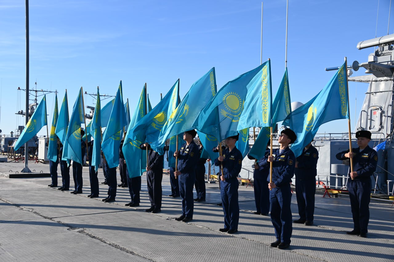 Под звуки Государственного гимна они сначала пронесли символ единства страны по пирсу дивизиона, а затем, закрепив его на палубе, продолжили движение на ракетно-артиллерийском корабле «Орал» по Каспию.