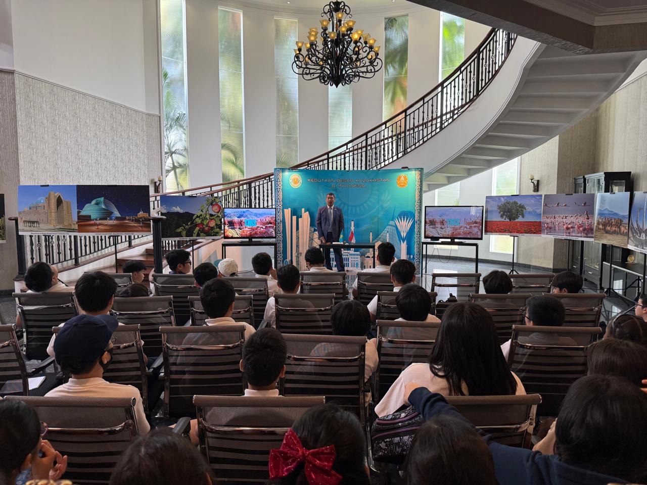 Школьники посмотрели видеоролики и фотовыставку о нашей стране, попробовали казахскую кухню и получили красочные брошюры с интересными фактами о Казахстане.