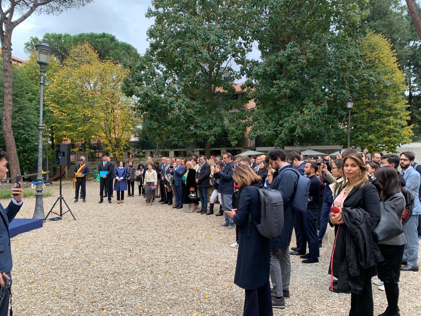 В церемонии приняли участие Министр культуры и информации Республики Казахстан Аида Балаева, Посол Казахстана в Италии Ерболат Сембаев, представители мэрии Рима, итальянской творческой интеллигенции, а также студенты из нашей страны, обучающиеся в Италии.