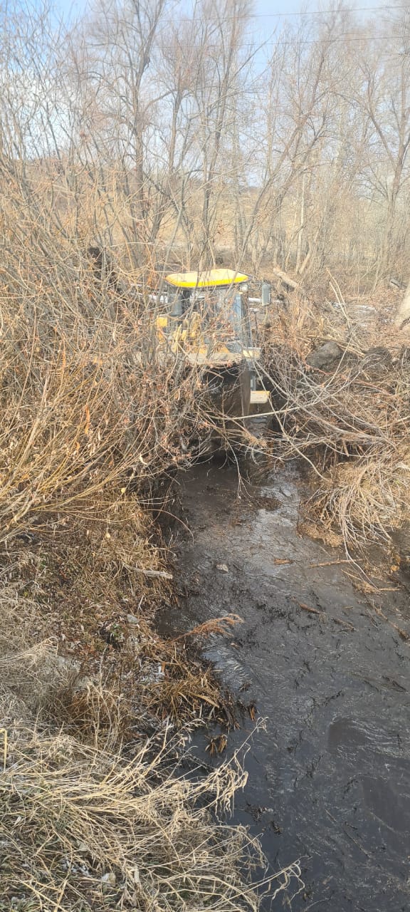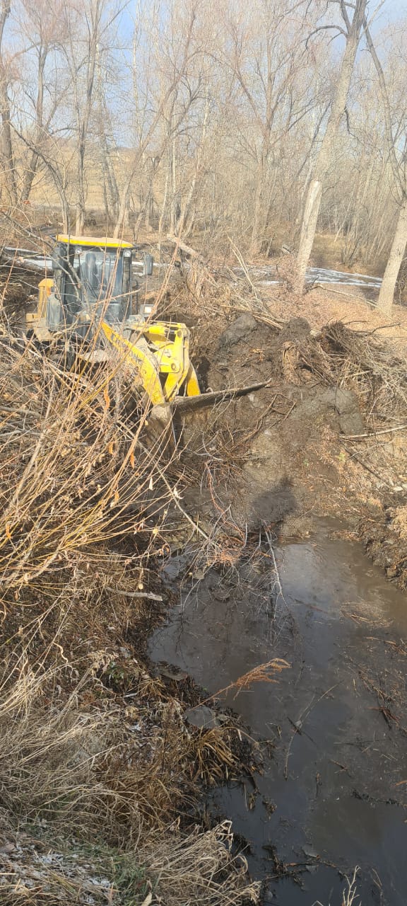 В Мариногорском сельском округе в с.Жумба на речке Кумовья идут противопаводковые работы. Идет расширение русла речки и очищение от мусора.