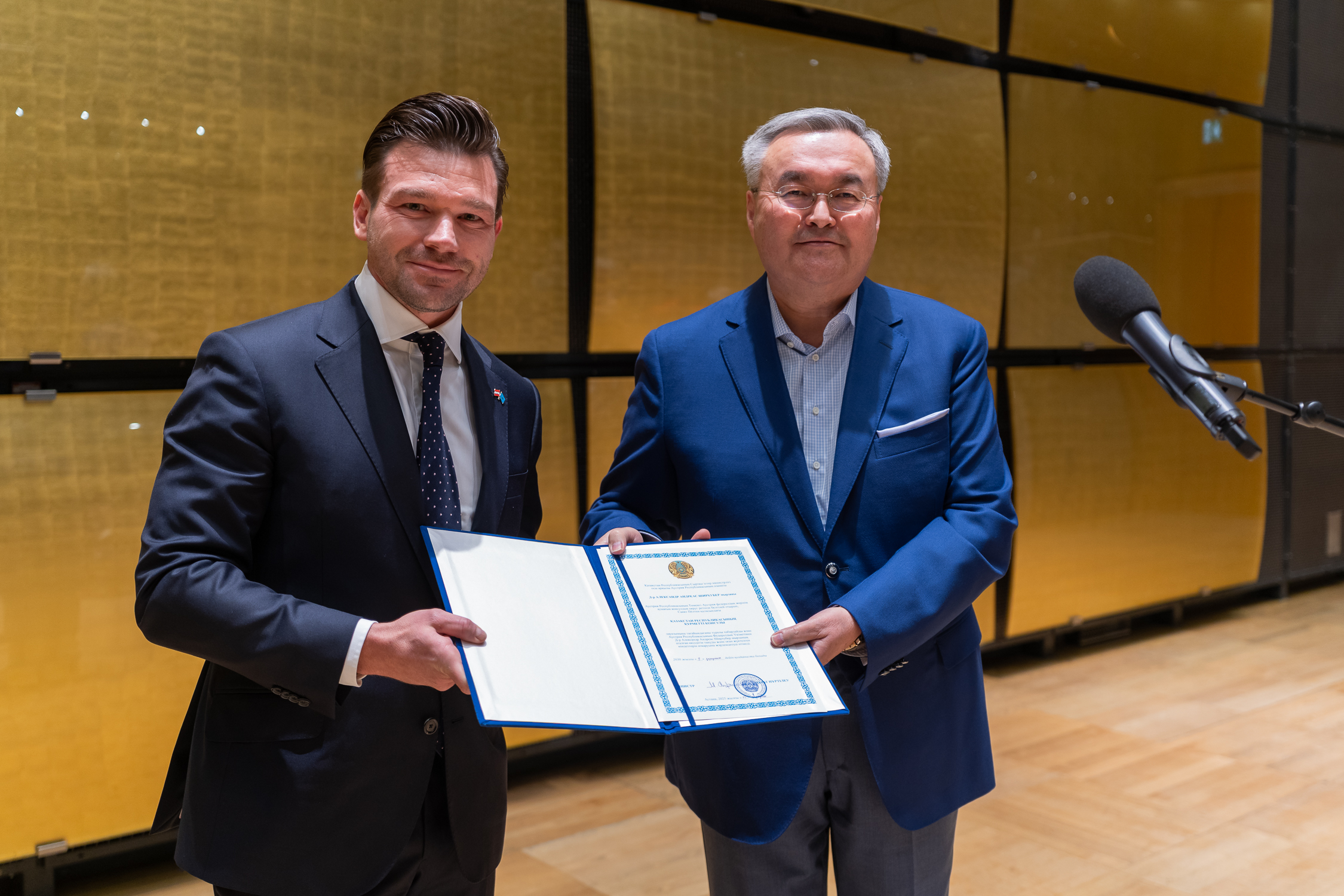 Кроме того, в ходе мероприятия гостям был представлен новый Почётный консул Республики Казахстан в федеральной земле Нижняя Австрия. Им стал крупный австрийский предприниматель в сфере транспорта Александр Ширхубер. Торжественно вручая патент Почётного консула, Посол М.Тлеуберди выразил уверенность в том, что А.Ширхубер внесёт весомый вклад в укрепление двустороннего сотрудничества между Казахстаном и Австрией в торгово-экономической и культурной сферах.