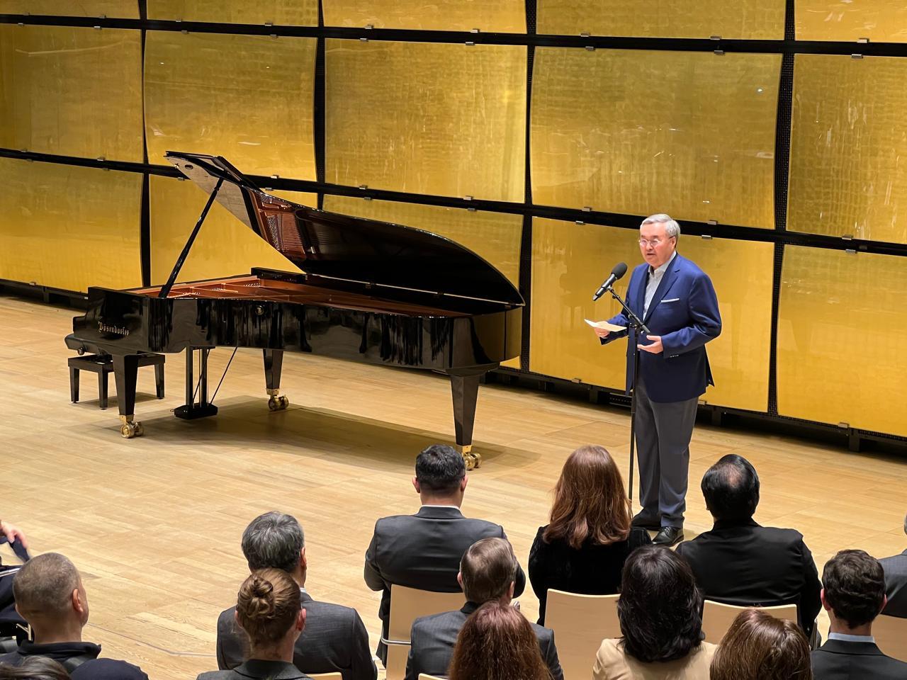 Открывая мероприятие, Посол Республики Казахстан в Республике Австрия, Постоянный представитель при международных организациях в Вене Мухтар Тлеуберди подчеркнул, что в текущем году казахстанцы отмечают 35-летие со дня принятия Декларации о государственном суверенитете, ставшей одним из ключевых документов на пути к независимости страны. Посол Тлеуберди также выразил благодарность Жание Аубакировой за участие в торжестве, отметив её выдающийся вклад в развитие национального и мирового музыкального искусства.