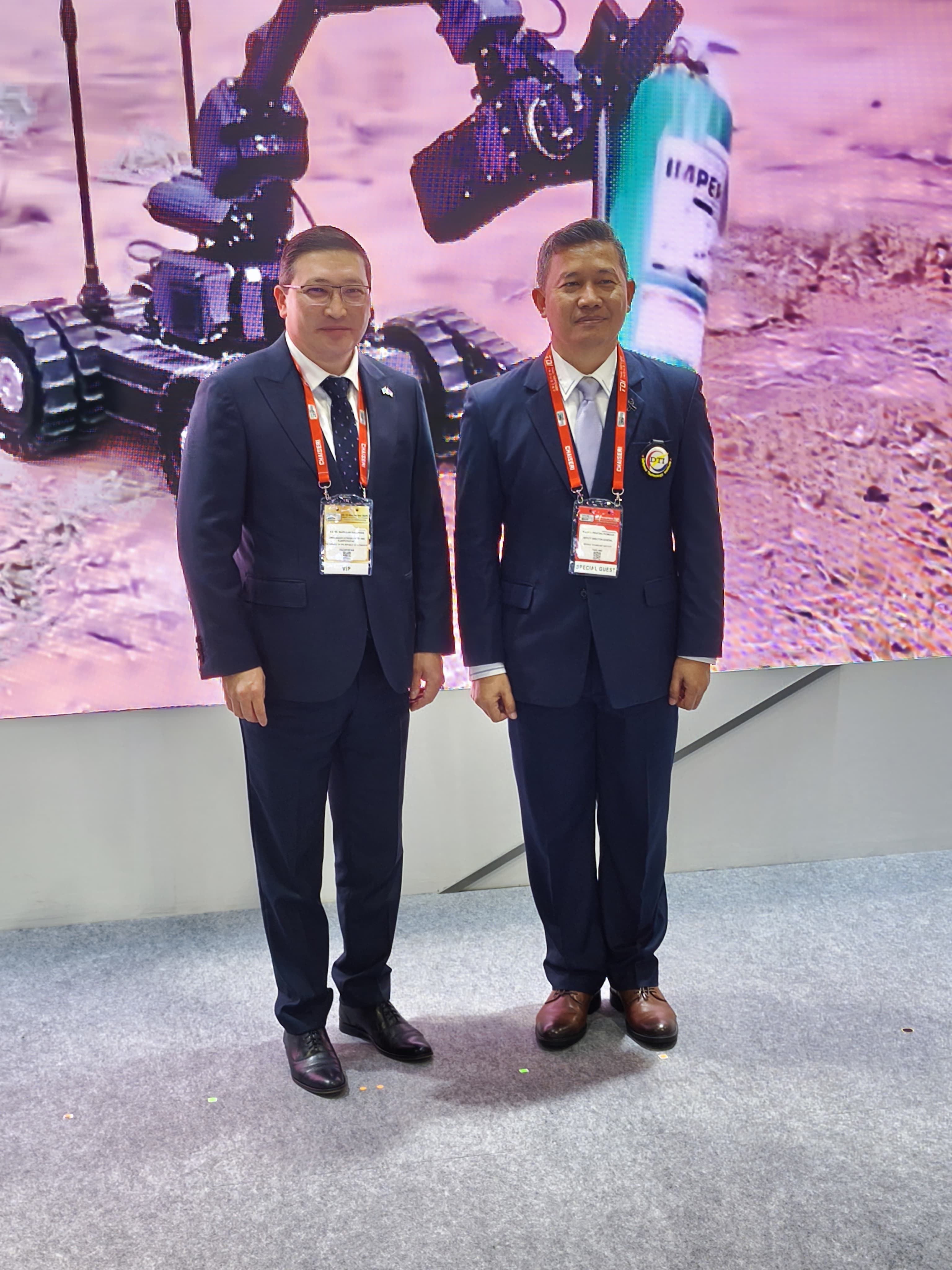 11.11.2025 16:01:17 49Бангкок, 10 ноября 2025 года - Посол Республики Казахстан в Королевстве Таиланд Маргулан Баймухан принял участие в церемонии открытия международной выставки «Defence & Security 2025», проходящей под девизом «Сила партнерства» в выставочном центре IMPACT Exhibition and Convention Center в г. Бангкок. Мероприятие проходило под руководством Министра обороны Королевства Таиланд Нотапоном Наркпаничем.