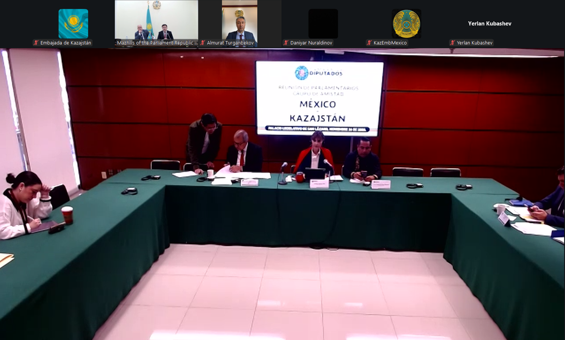 Мехико, 26 ноября 2025 года – Состоялась первая встреча Групп дружбы Парламентов Республики Казахстан и Мексиканских Соединенных Штатов в обновленном составе. Встреча была проведена в онлайн формате. Несмотря на значительную часовую разницу, участники обменялись рядом предложений по взаимодействию, а сами обсуждения относительно перспектив сотрудничества прошли в оживленном ритме.