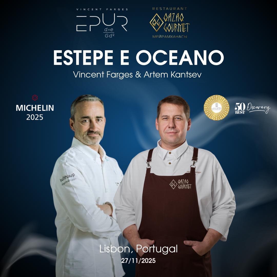 Мероприятие, приуроченное к празднованию 35-ой годовщины принятия Декларации о государственном суверенитете Республики Казахстан, прошло 27 ноября в историческом центре Лиссабона, в ресторане EPUR, где известный шеф-повар Вэнсан Фарж, обладатель престижной звезды Michelin, принимал одного из лучших мастеров кулинарного искусства Казахстана Артёма Канцева, представляющего ресторан Qazaq Gourmet и удостоенного престижной гастрономической награды Франции La Liste 2026.