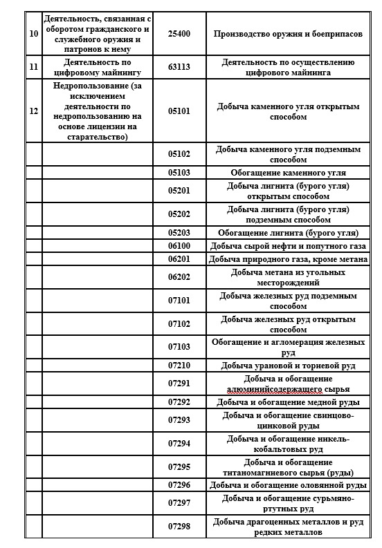 Перечень видов деятельности, по которым разрешено применение специального налогового режима для самозанятых