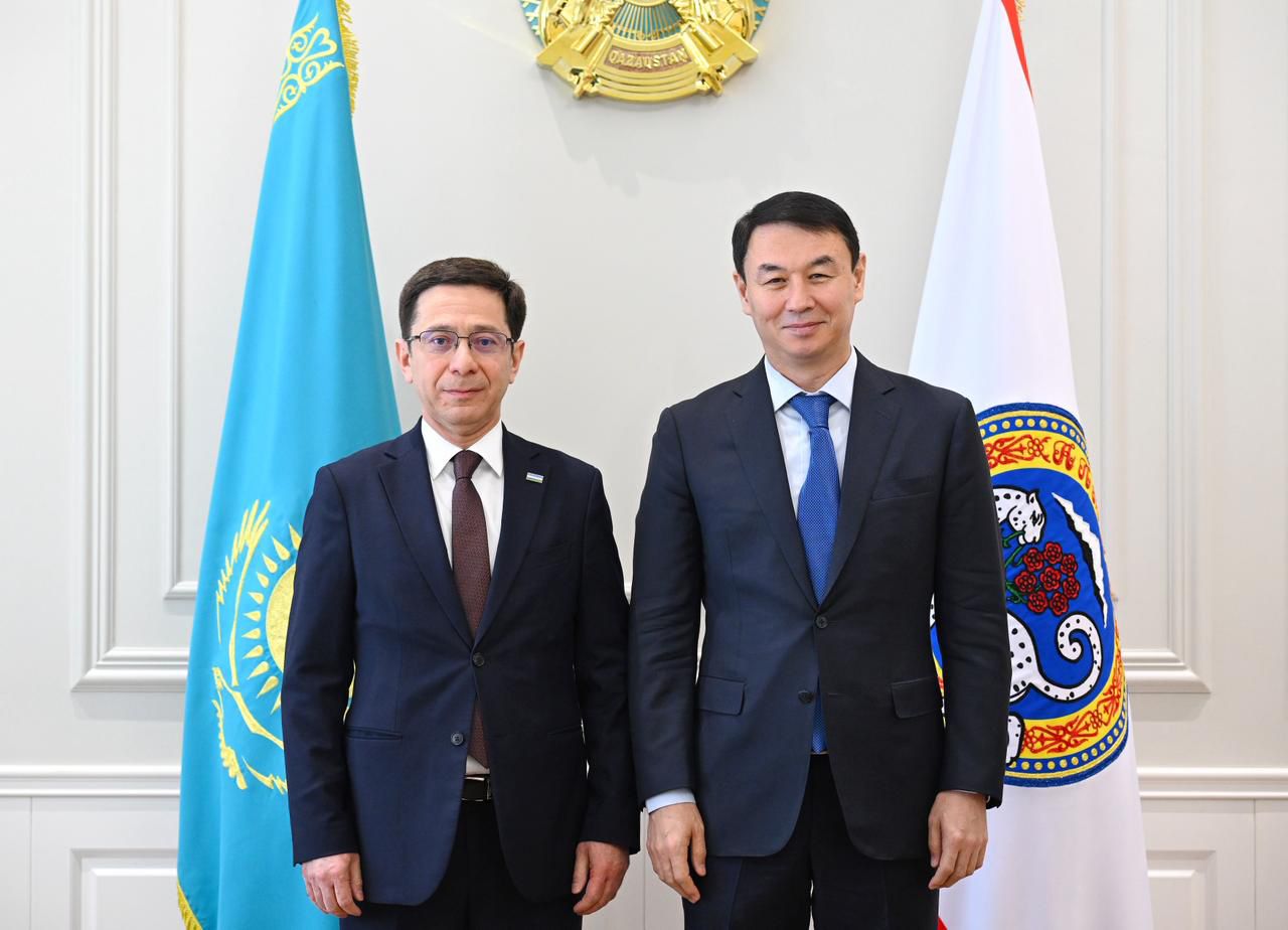 Аким Алматы Дархан Сатыбалды встретился с Чрезвычайным и Полномочным Послом Республики Узбекистан Бахтиёром Ибрагимовым.