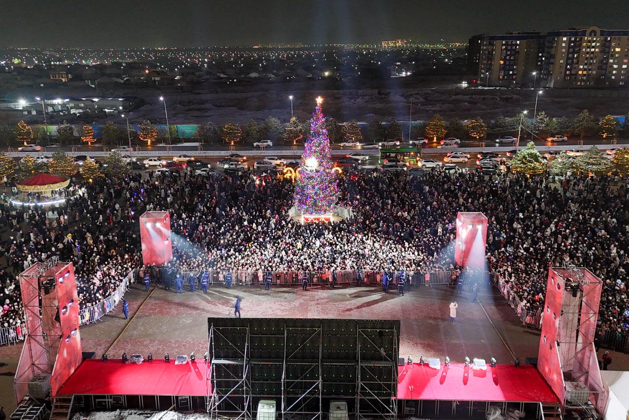 В этот вечер площадь «Астана» превратилась в настоящее праздничное пространство, став центром притяжения для жителей города. Великолепная иллюминация, продуманное тематическое оформление и насыщенная развлекательная программа наполнили площадь волшебной атмосферой. Для маленьких гостей был подготовлен аттракцион, а территория была украшена более чем 80 елками, усиливающими ощущение зимнего праздника.