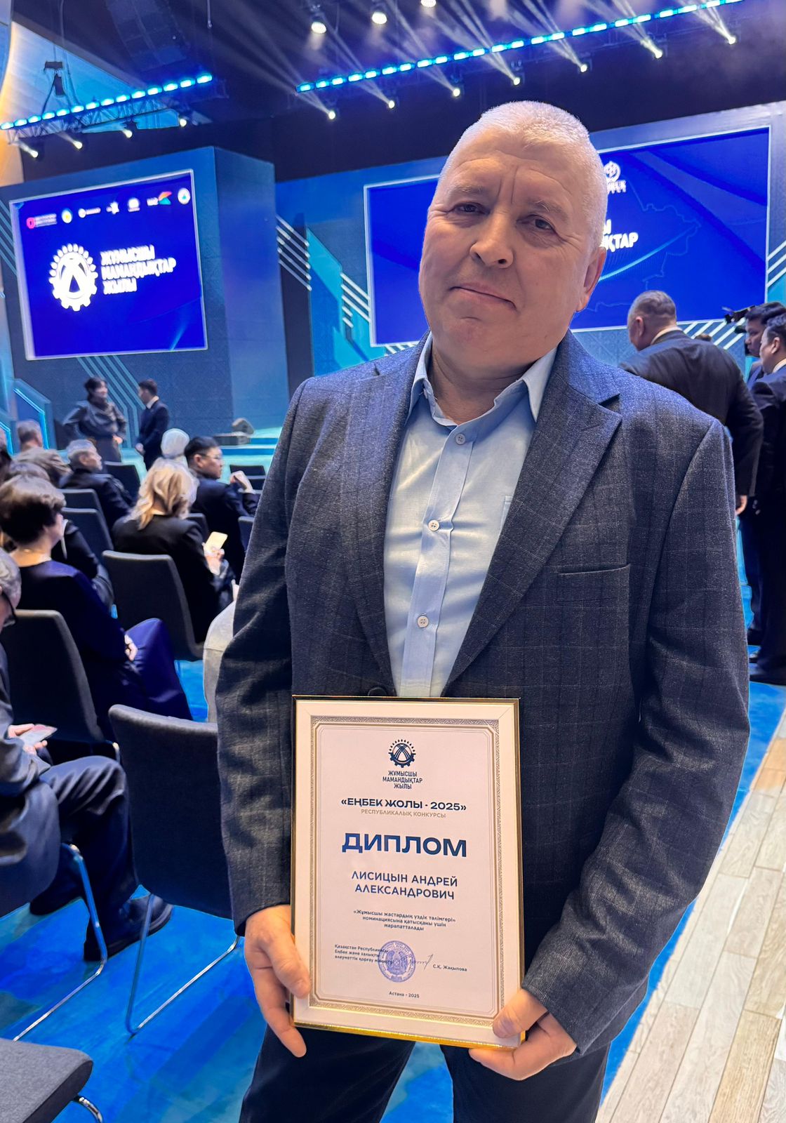 По итогам республиканского этапа конкурса Андрей Александрович был награждён Дипломом «Лучший наставник молодежи» Министром труда и социальной защиты населения Республики Казахстан Жакуповой Светланой Кабыкеновной.