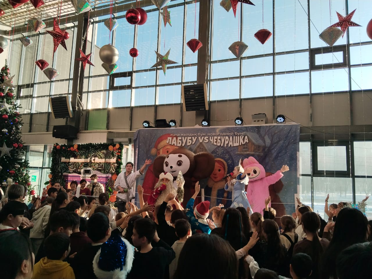 Для юных участников была подготовлена яркая и насыщенная программа под названием «Лабубу vs Чебурашка: Новогодний бум!», объединившая театрализованное интерактивное шоу и просмотр анимационного фильма.