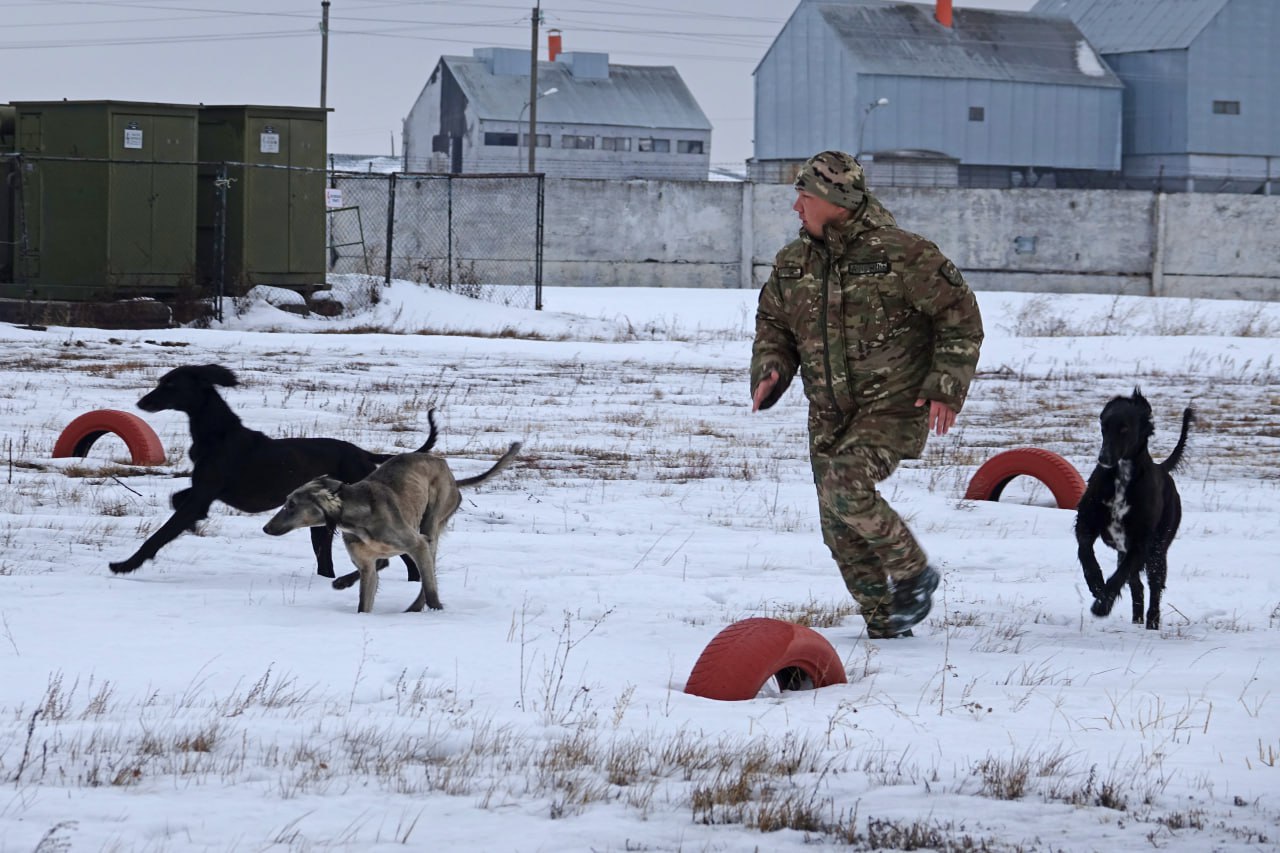 В Акмолинской области в войсковой части 44813 вместе с военнослужащими выполняет учебно-боевые задачи собака по кличке Айқас древней породы тазы.